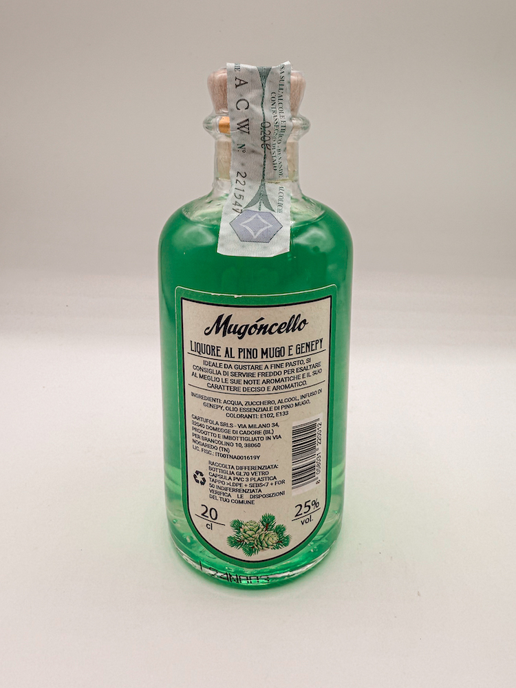 Dai boschi incontaminati della Val di Toro e dal cuore di una tradizione secolare nasce il Mugoncello, un liquore unico che porta il respiro dalle montagne direttamente al tuo palato! L'aroma è ricco di note fresche e balsamiche, con sentori di resina e una leggera dolcezza che richiama la natura incontaminata dei pini d'alta quota.