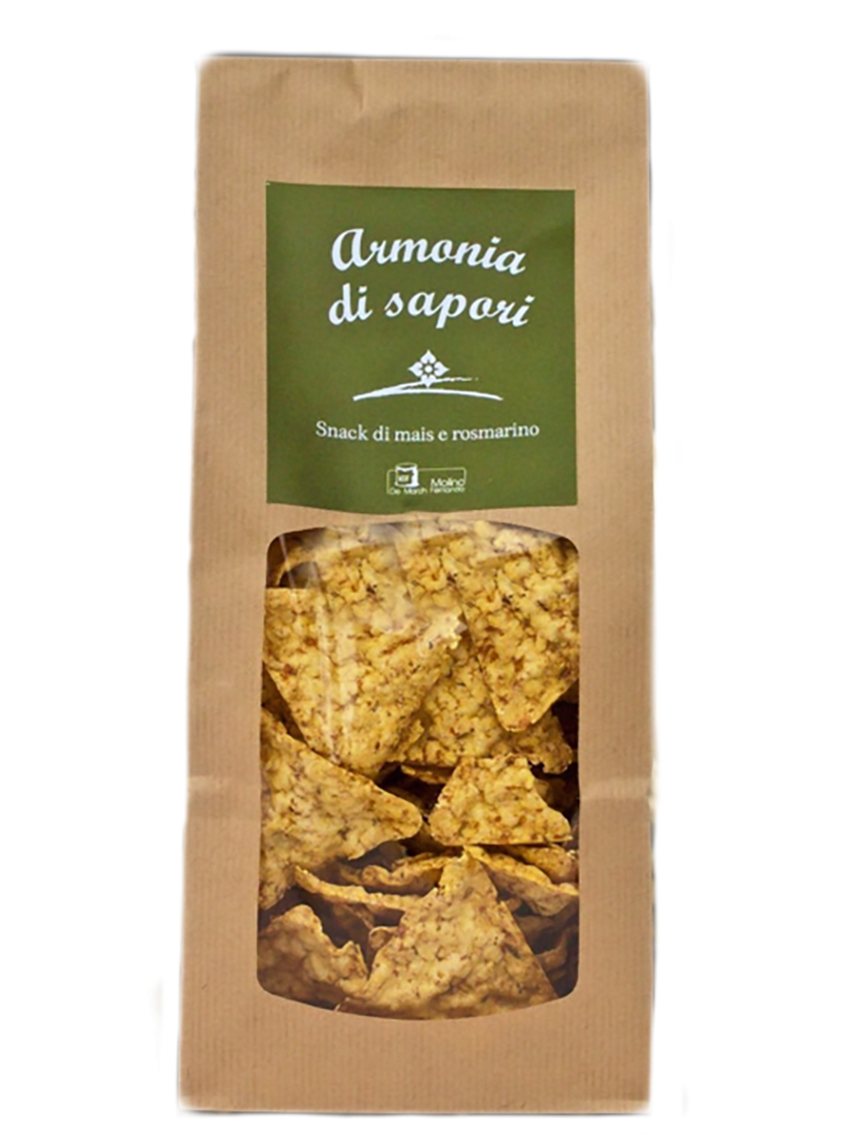 Genuini, nutrienti e sautari, gli Snack del Molino tostati con poche gocce di acqua ed un pizzico di sale, si possono sgranocchiare ai gusti di mais, farro, orzo e riso: prodotti provenienti da materie prime selezionate e controllate, privi di additivi e conservanti. Perfetti per piccole golosità o per i momenti spezzafame, i simpatici snack a forma di triangolo adatti per tutta la famiglia, sono il contorno ideale per accompagnare ed esaltare piccoli assaggi gastronomici. Sono ottime da gustare da sole ma anche insieme a formaggio, salumi e verdure o composte di frutta in sostituzione al pane.